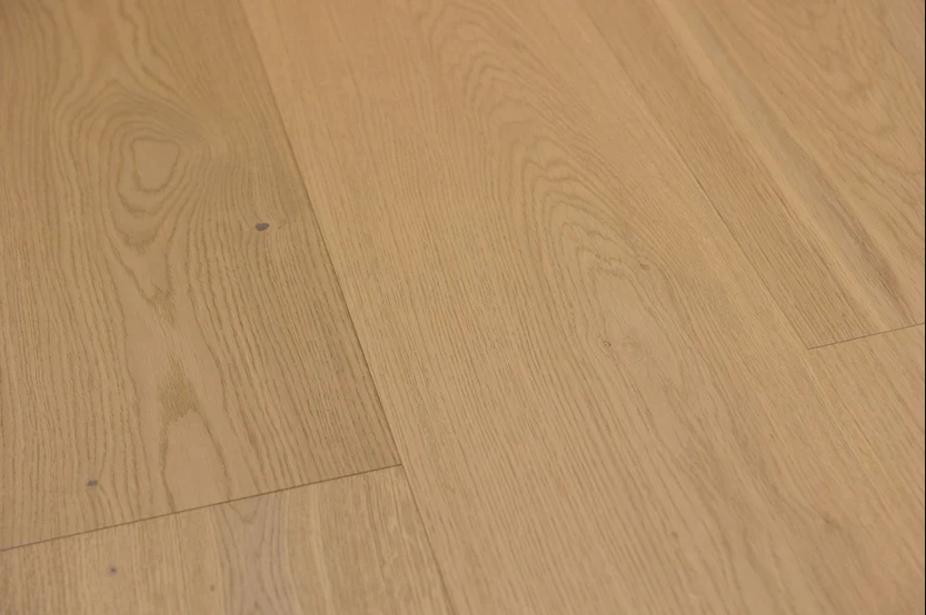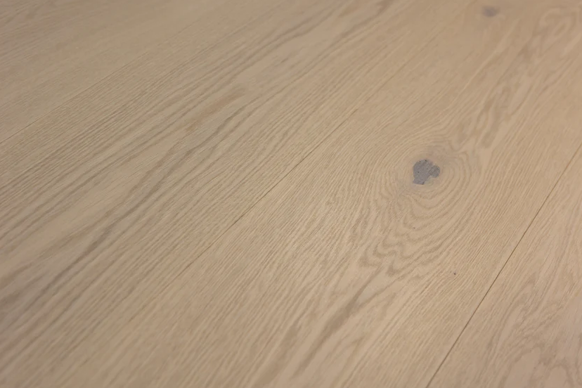 Deska 3-warstwowa w klasie Natur, wykończona olejem UV w kolorze Cream. Dopuszczalna biel do 30mm, sęki zdrowe do 30mm, sęki szpachlowane do 20mm, słój dowolny, dopuszczalne szpachlowane pęknięcia i naturalne różnice kolorystyczne.